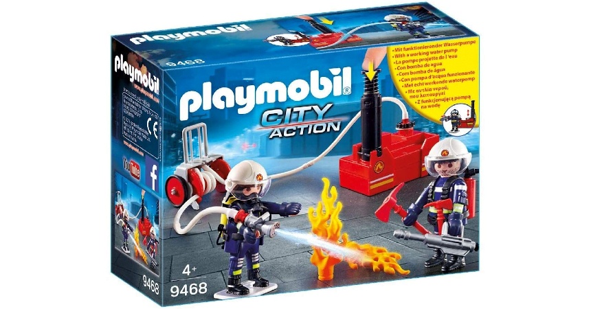 Muchos niños y niñas sueñan con ser bomberos y con este set podrán acercarse un poquito más a esta profesión. Trae dos figuras con su equipo de bomberos, un extintor de incendios, un equipo de respiración, un montón de 37 accesorios y, lo más guay, una bomba de agua que funciona con agua de verdad y que será lo que más divierta a los niños.