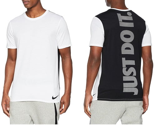 Es de manga corta con cuello redondo, y como puedes ver en la foto, la parte delantera es blanca con el logo de Nike en su parte de abajo,  y la posterior es negra con el estampado Just do it, Seguro que te suena este lema, es un clásico en los anuncios de Nike. Y si quieres que te dure esta camiseta como nueva, solo tienes que seguir las indicaciones de lavado del fabricante y podrás disfrutarla años.